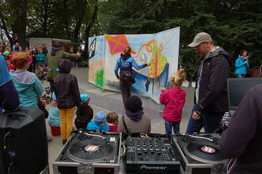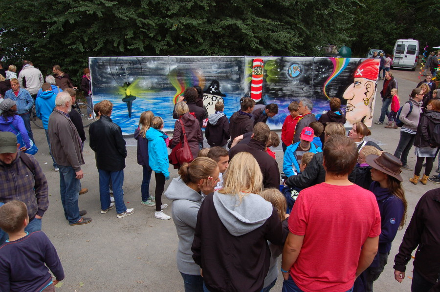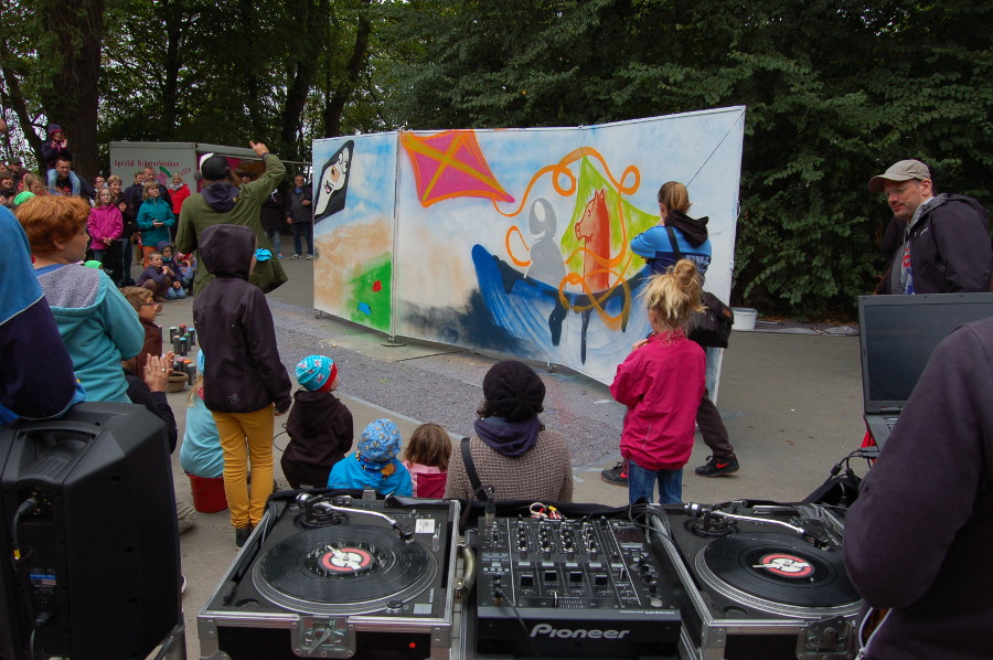 Mit dabei waren DJ Stickeltodd (Golden Error), MC Flowin Immo, die Künstler Onkel Oxe, Pommes, Felix & ich, sowie Jürgen und Nina als Helfer zum streichen und auf- und abbauen.