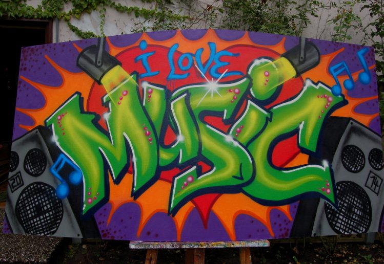In august I gave a graffiti workshop for a youth centre. We created this painting on a wooden plate for the music room.