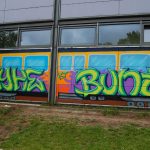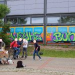 It was the pupils´idea to paint a train on the wall, and on it the graffiti. The slogan is meant as an anti-xenophobic, or pro-multicultural statement in town. I thought it was very appropriate to what we did as well.
