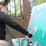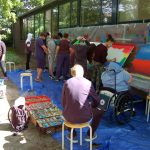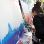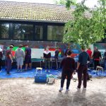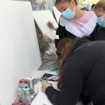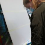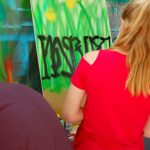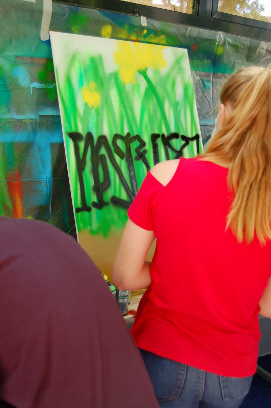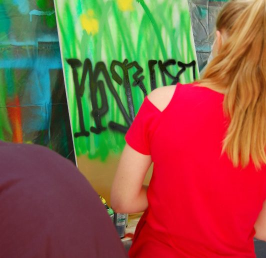 Die Schüler hatten sich schon einige Tage vorher mit Graffiti beschäftigt und eigene Entwürfe gemacht. Ich unterstützte dann die Umsetzung.